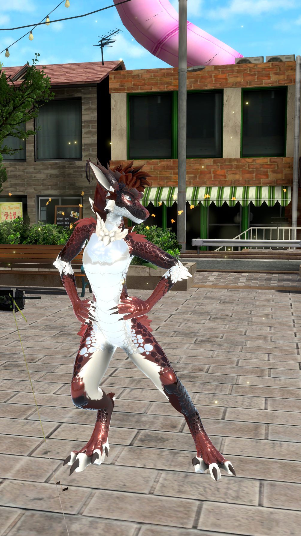 This avatar also comes with dynamic digitigrade legs and MMD visemes. There is not currently a planti-rigged version of this avatar, due to the addition of VRChat's constraints system. The legs SHOULD still be Quest compatible if you're using the beta SDK with the new constraints, if you convert the constraints to VRC constraints.