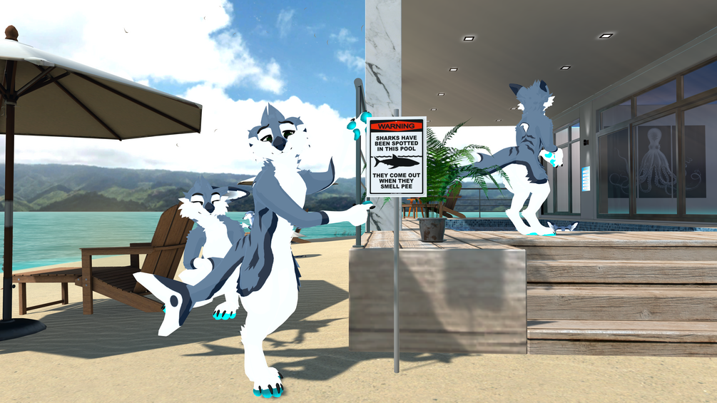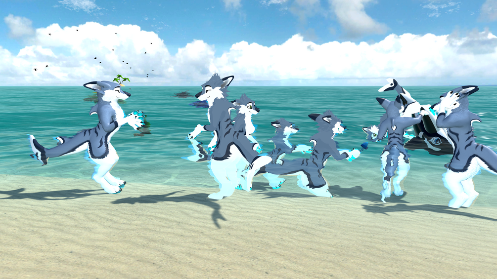 Uses GoGoLoco menus, as well as Warren's Fast Fur Shader for the "Fluffy" variant. Uses Poiyomi Pro(although Poiyomi Toon should function and convert well enough) for the non-fluffy variants.